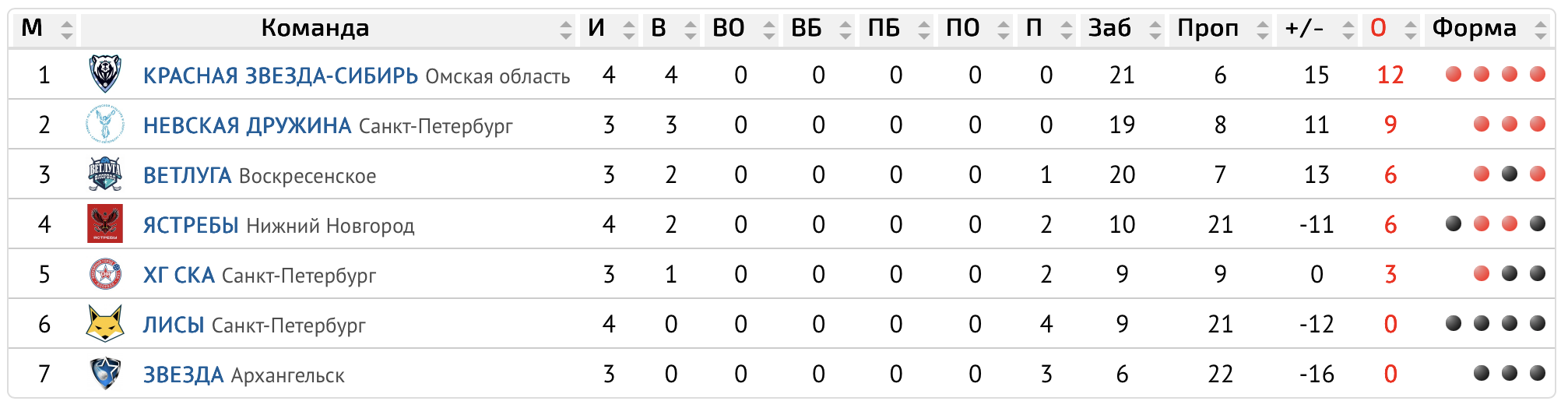 | М | Команда | И | О |
